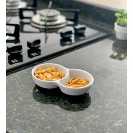 A Petisqueira melamina é ideal para servir petiscos, salgados, frutas, doces e porções com molho ou acompanhamento na divisão do centro
